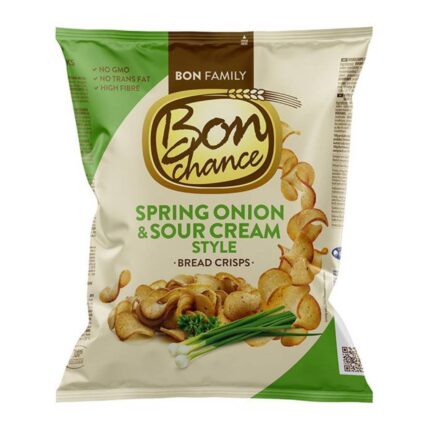 Φρέσκο πράσινο κρεμμυδάκι και απαλή sour cream σε τέλεια ισορροπία! Τα Bon Chance Breadcrisps Spring Onion & Sour Cream προσφέρουν τραγανή απόλαυση με δροσερή, πλούσια γεύση σε κάθε μπουκιά. Το ιδανικό snack για στιγμές χαλάρωσης ή για να συνοδεύσει ποτά και dips.