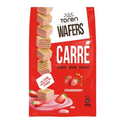 Carre Κύβοι Γκοφρέτας Με Κρέμα Φράουλας Απολαύστε τραγανούς κύβους γκοφρέτας γεμισμένους με δροσερή κρέμα φράουλας. Ένα γλυκό σνακ που συνδυάζει την ελαφριά υφή της γκοφρέτας με την φρουτένια γεύση της φράουλας. Ιδανικό για μικρές λιχουδιές μέσα στη μέρα, στο γραφείο, στο σπίτι ή όπου κι αν βρίσκεστε, σε πρακτική συσκευασία 125gr.