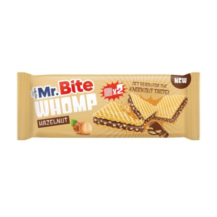 Mr Bite Whomp Γκοφρέτα Με Κρέμα Φουντουκιού Λαχταριστή γκοφρέτα με πλούσια κρέμα φουντουκιού που συνδυάζει τραγανή υφή και απολαυστική γεύση ξηρού καρπού. Ιδανικό snack για κάθε στιγμή της ημέρας, σε πρακτική συσκευασία 44gr που χωράει παντού.