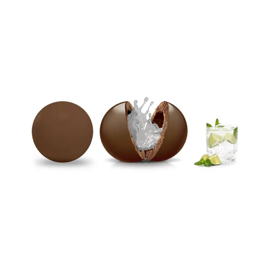 Ανακαλύψτε τα Crispo Ciocoli Gin Tonic, απολαυστικά dragées σοκολάτας γάλακτος με δροσερή, ρευστή γέμιση εμπνευσμένη από το αγαπημένο cocktail Gin Tonic.