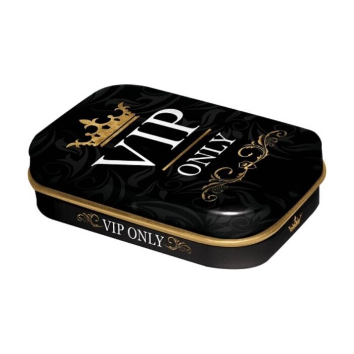 Δροσιστικές καραμέλες μέντας σε κομψή μεταλλική κασετίνα με το design “VIP Only”. Ένα μικρό συλλεκτικό gadget που χαρίζει φρεσκάδα με στυλ και γίνεται το απόλυτο αξεσουάρ τσέπης.