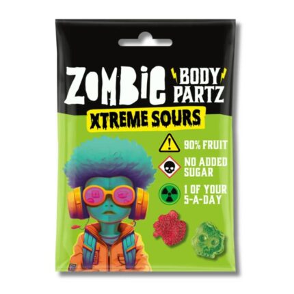 Ανακαλύψτε τα Zombie Sours Body Partz Gummies και ζήστε μια αίσθηση… ζόμπι! Αυτά τα ζελεδάκια με όμορφη και τρομακτική μορφή σώματος συνδυάζουν ξινή γεύση με φρουτένιες νότες, προσφέροντας μια μοναδική εμπειρία για τους λάτρεις των σούπερ ξινών γλυκών. Με 35g γεμάτα ένταση και γεύση, είναι το ιδανικό σνακ για όσους αγαπούν το αίσθημα της περιπέτειας και την ανατροπή στη γλυκιά απόλαυση.