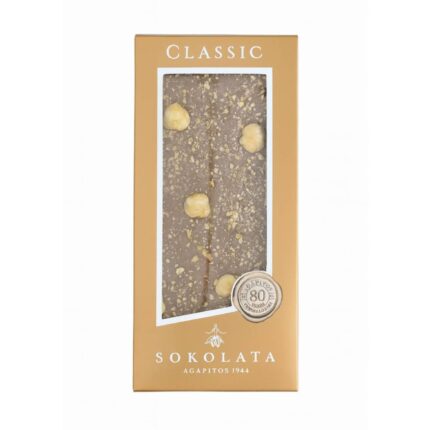 Κλασικός και ακαταμάχητος συνδυασμός! Η Agapitos Hazelnuts & Milk Chocolate ενώνει βελούδινη σοκολάτα γάλακτος με πλούσια, καβουρδισμένα φουντούκια, προσφέροντας τραγανή υφή και απολαυστική γεύση σε κάθε μπουκιά. Χειροποίητη ελληνική ποιότητα, ιδανική για καθημερινή απόλαυση ή ως δώρο.