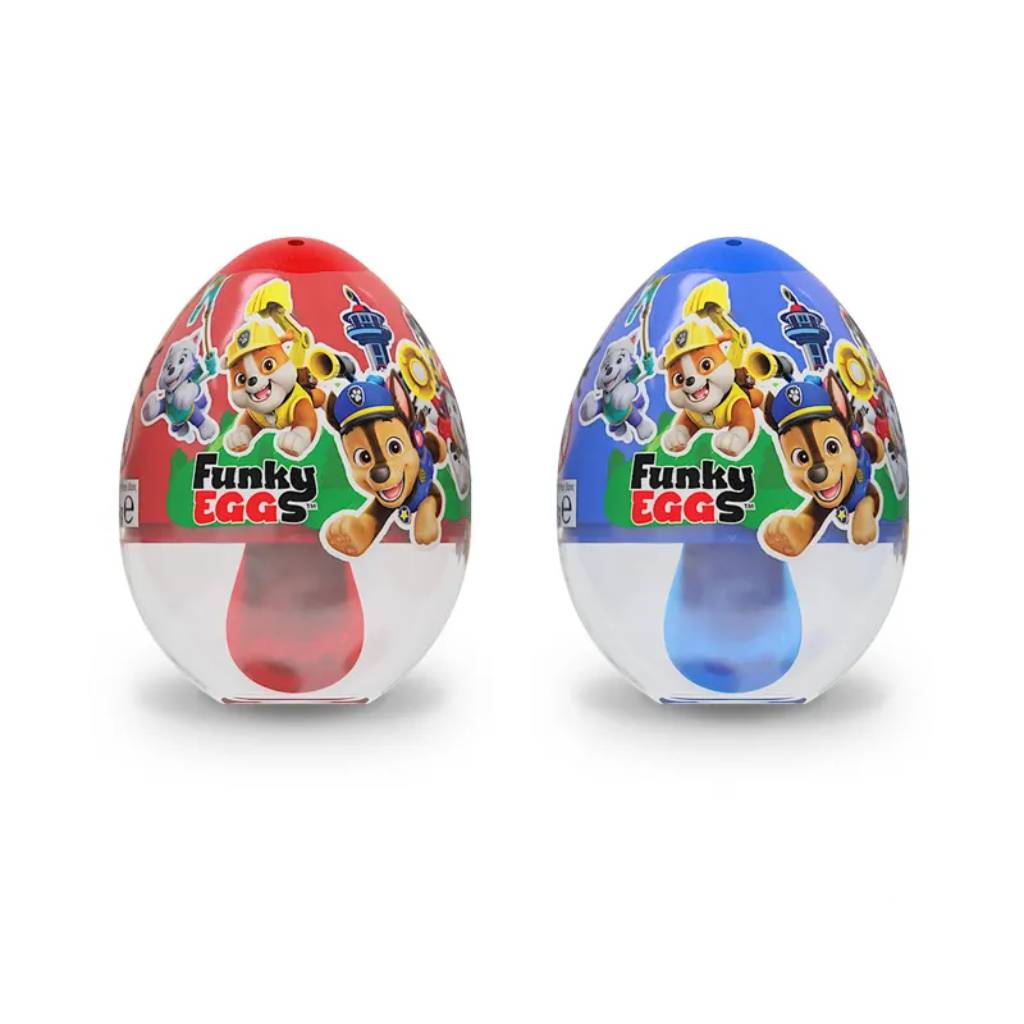 Τα Funky Eggs Paw Patrol 10g φέρνουν χαρά και απόλαυση σε κάθε παιδί! Κάθε αυγό περιέχει ένα ολόκληρο γλειφιτζούρι 10g σε υπέροχη γεύση και μία συλλεκτική έκπληξη με τους αγαπημένους ήρωες της Paw Patrol.